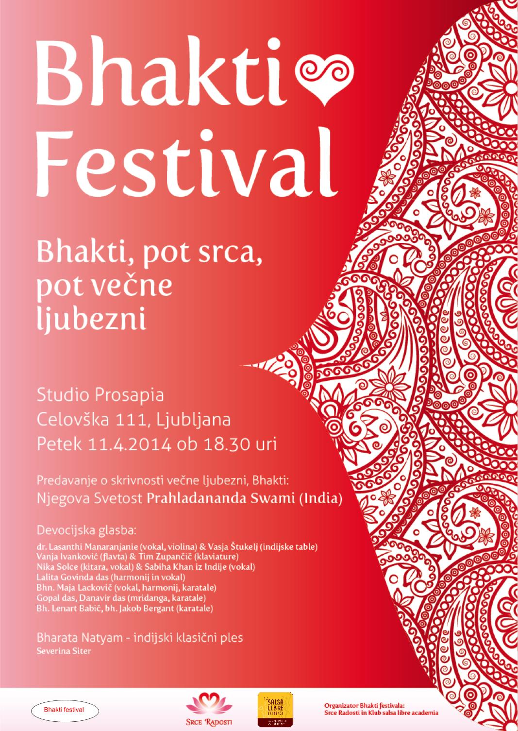 Danes, v petek, 11. 4. 2014, bo ob 18.30 na festivalu BHAKTI (Studio Prosapia, Celovška 111, Ljubljana) nastopila tudi naša članica dr. Lasanthi Manaranjanie Kalinga Dona (vokal, violina). Prijazno vabljeni!